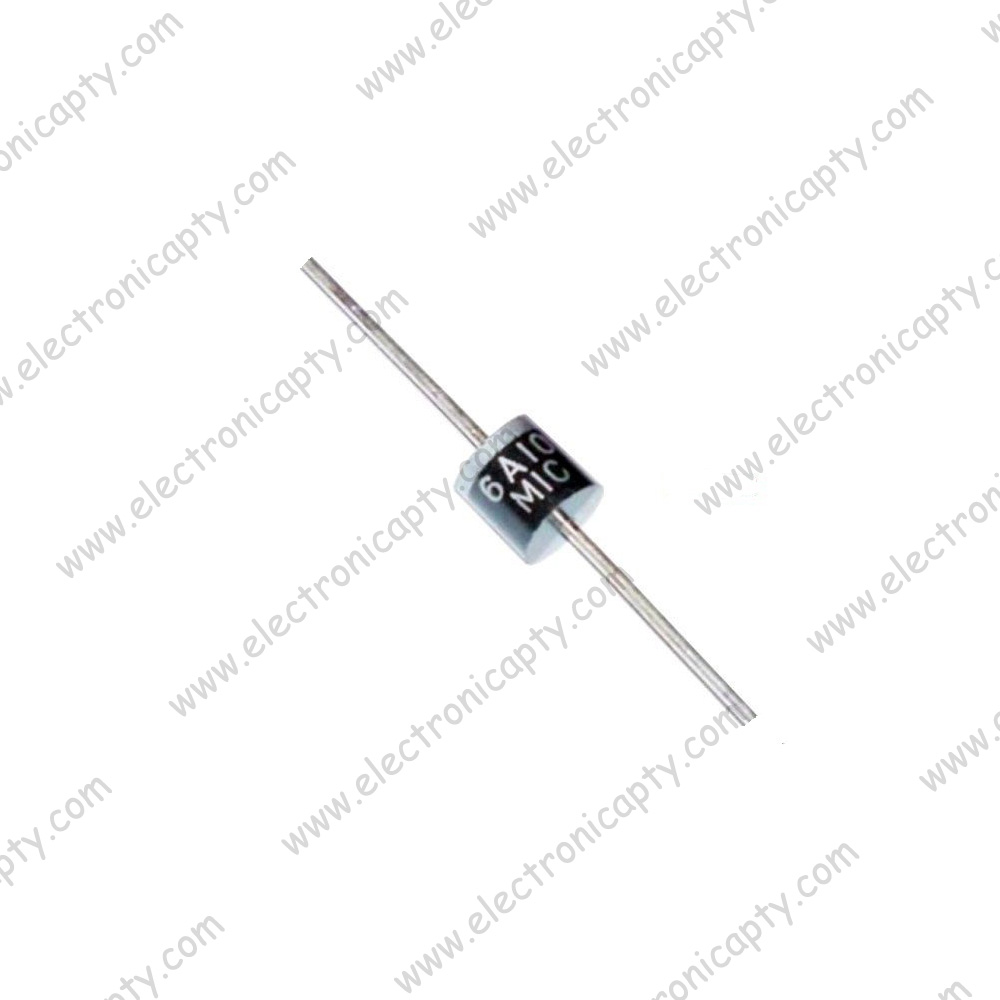 El 6A6 es un rectificador pasivado de vidrio con caja de plástico moldeado y terminales estañados con soldadura pura.