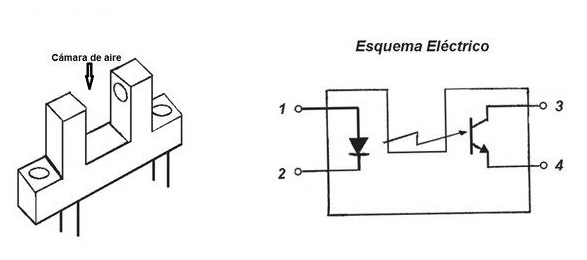 A veces son conocidos como sensores de interrupción, su funcionamiento es muy simple cuando un objeto de cualquier tipo atraviesa la "Cámara de Aire" el sensor envía un 1 al sistema que censa, por ello al poner una rueda con orificios ajustados a cierto número de grados y unida a un eje de motor es facil determinar la velocidad a la que el motor está girando y el ángulo en el cual esta.