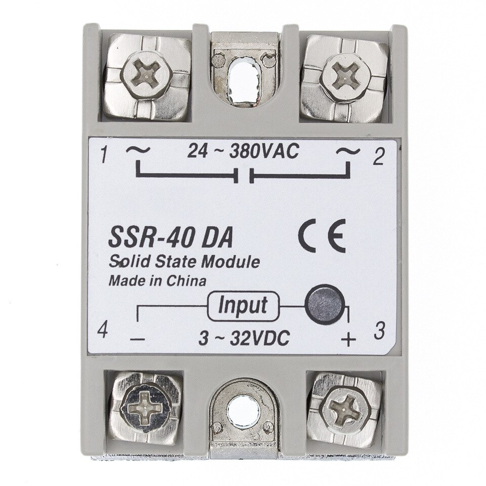 Relé de estado sólido SSR-40DA Puede proporcionar control hasta 40 A. Entrada, es decir, el disparador debe ser voltaje CC. La salida, es decir, la carga debe ser voltaje CA. Una de las mayores ventajas de los relés de estado sólido es que no tienen contactos mecánicos como los relés normales. En su lugar, usa Triac. También ofrece seguridad adicional con aislamiento óptico.